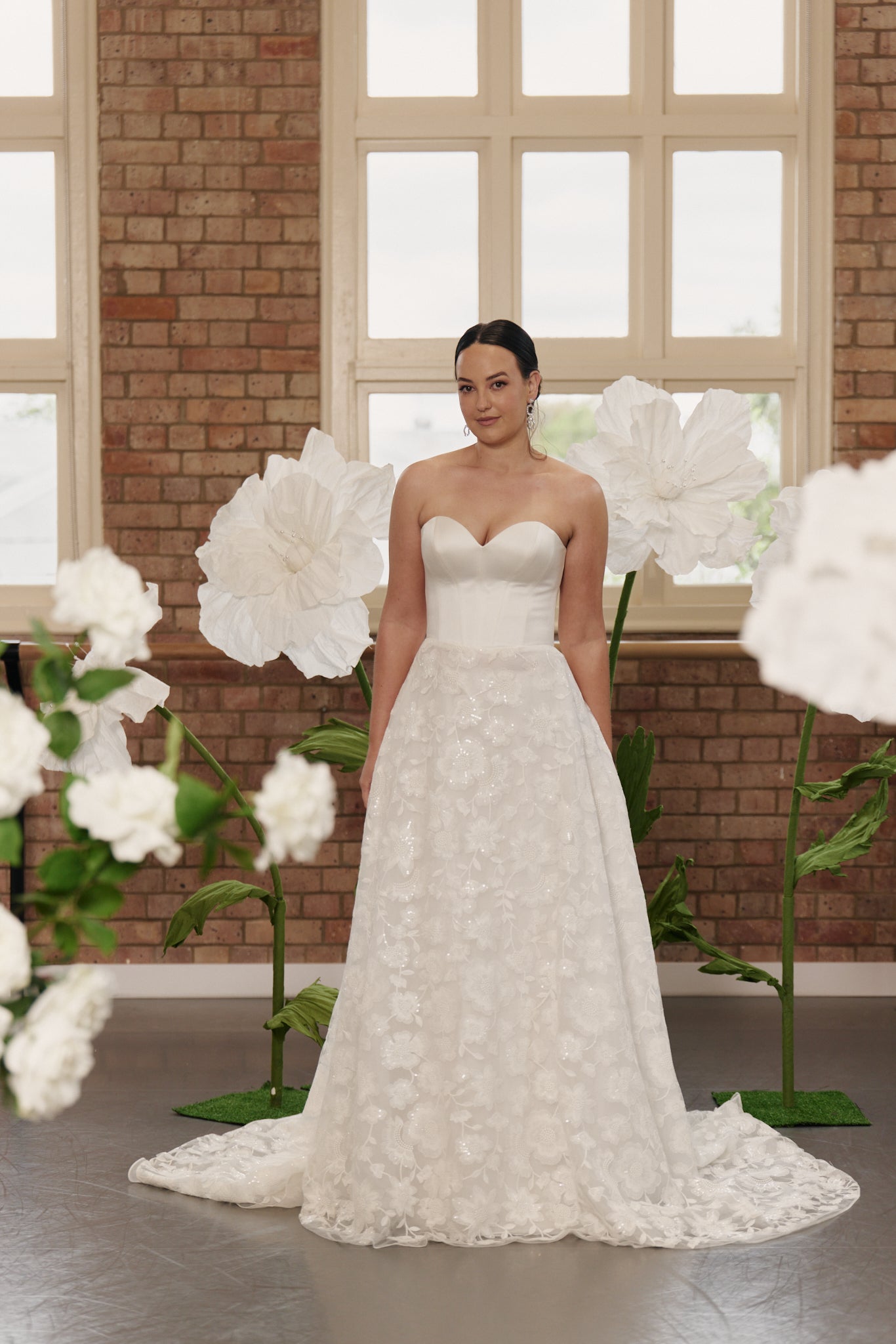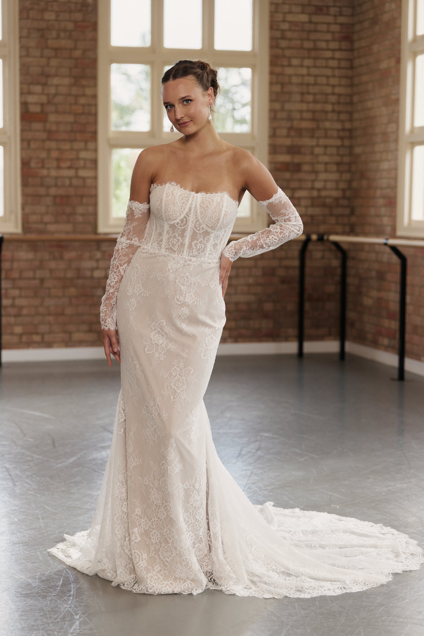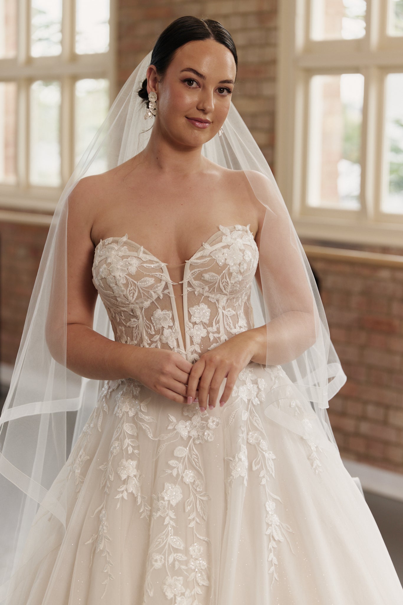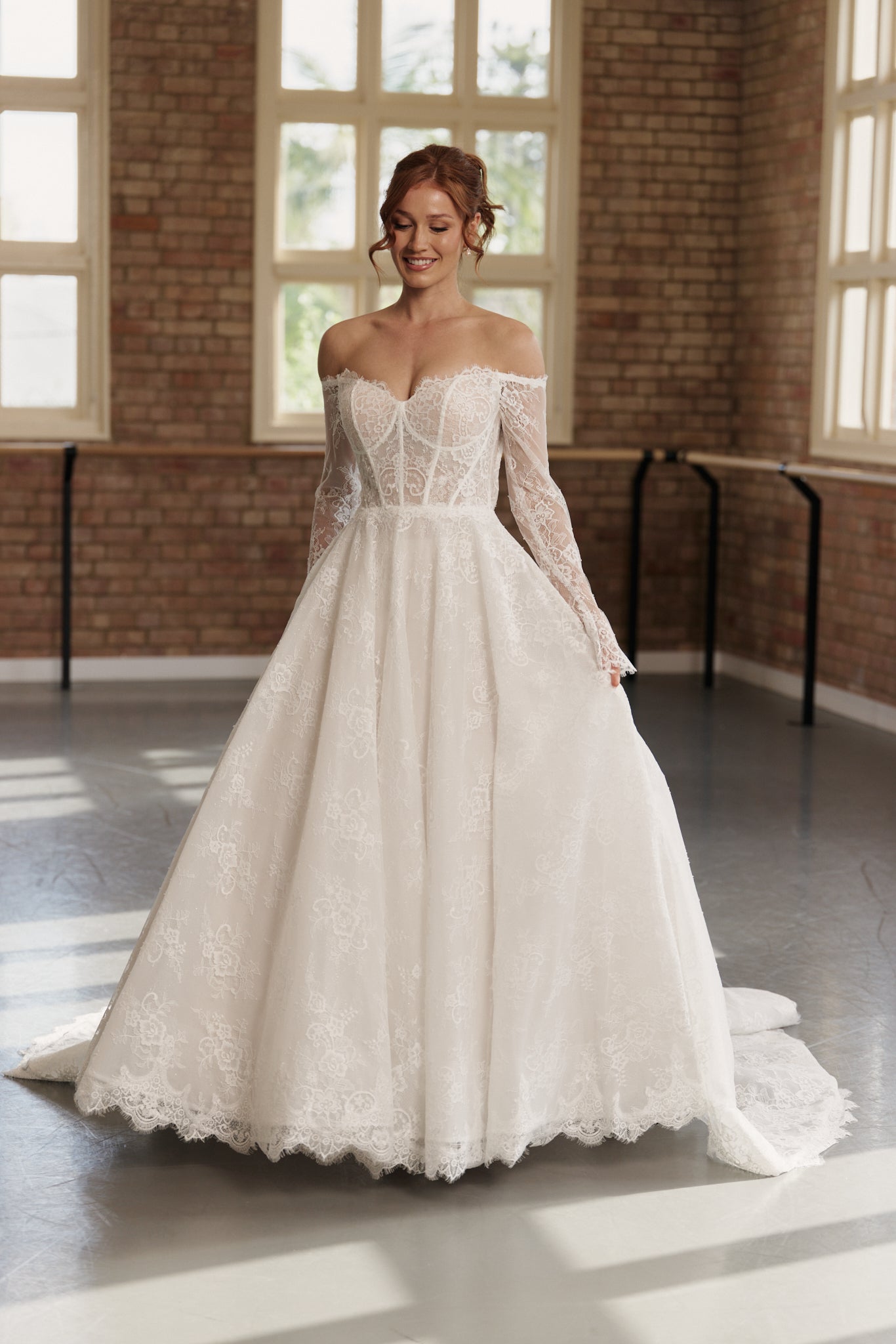 Flattering, supportive, and surprisingly comfortable, our corset wedding dresses are designed to shape beautifully while feeling secure all day long. Discover structured bodices with lace-up or hidden closures that combine timeless elegance with all-day wearability.