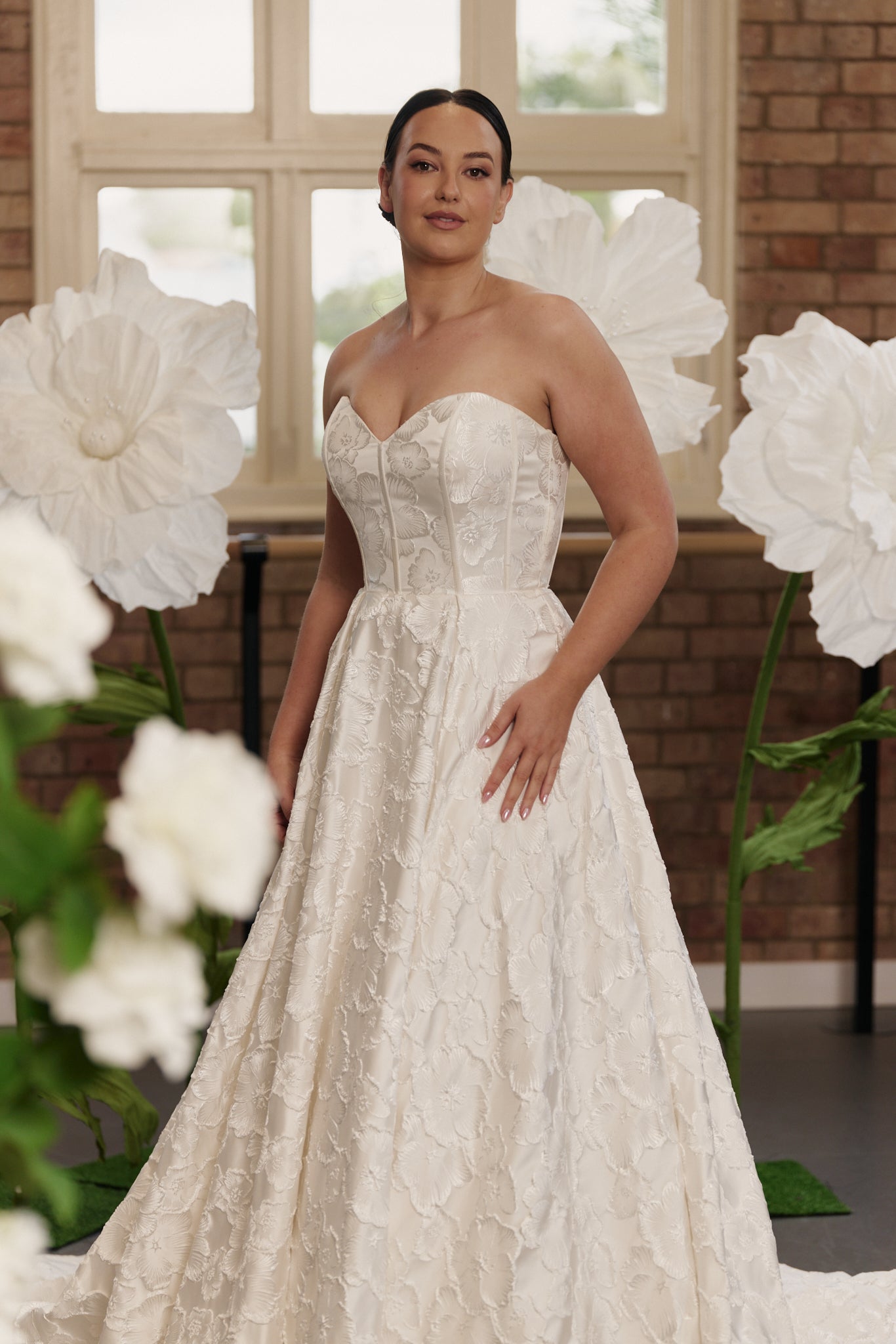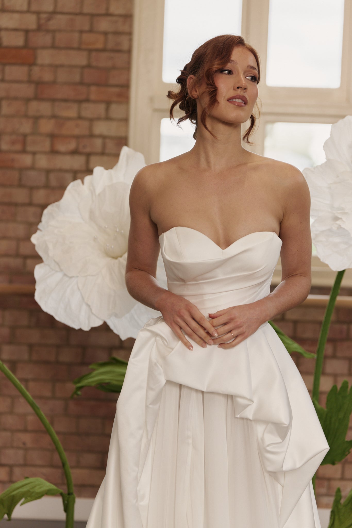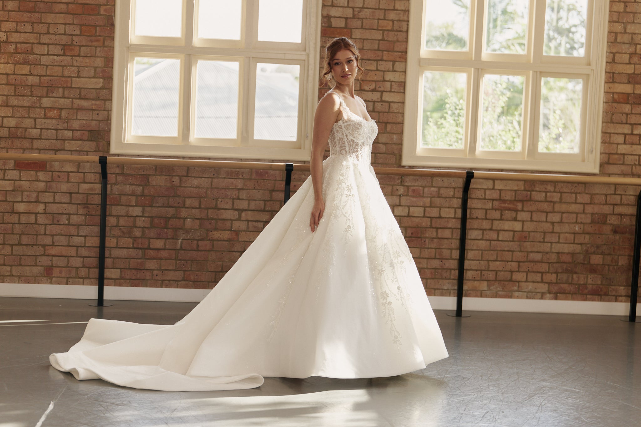 Flattering, supportive, and surprisingly comfortable, our corset wedding dresses are designed to shape beautifully while feeling secure all day long. Discover structured bodices with lace-up or hidden closures that combine timeless elegance with all-day wearability.
