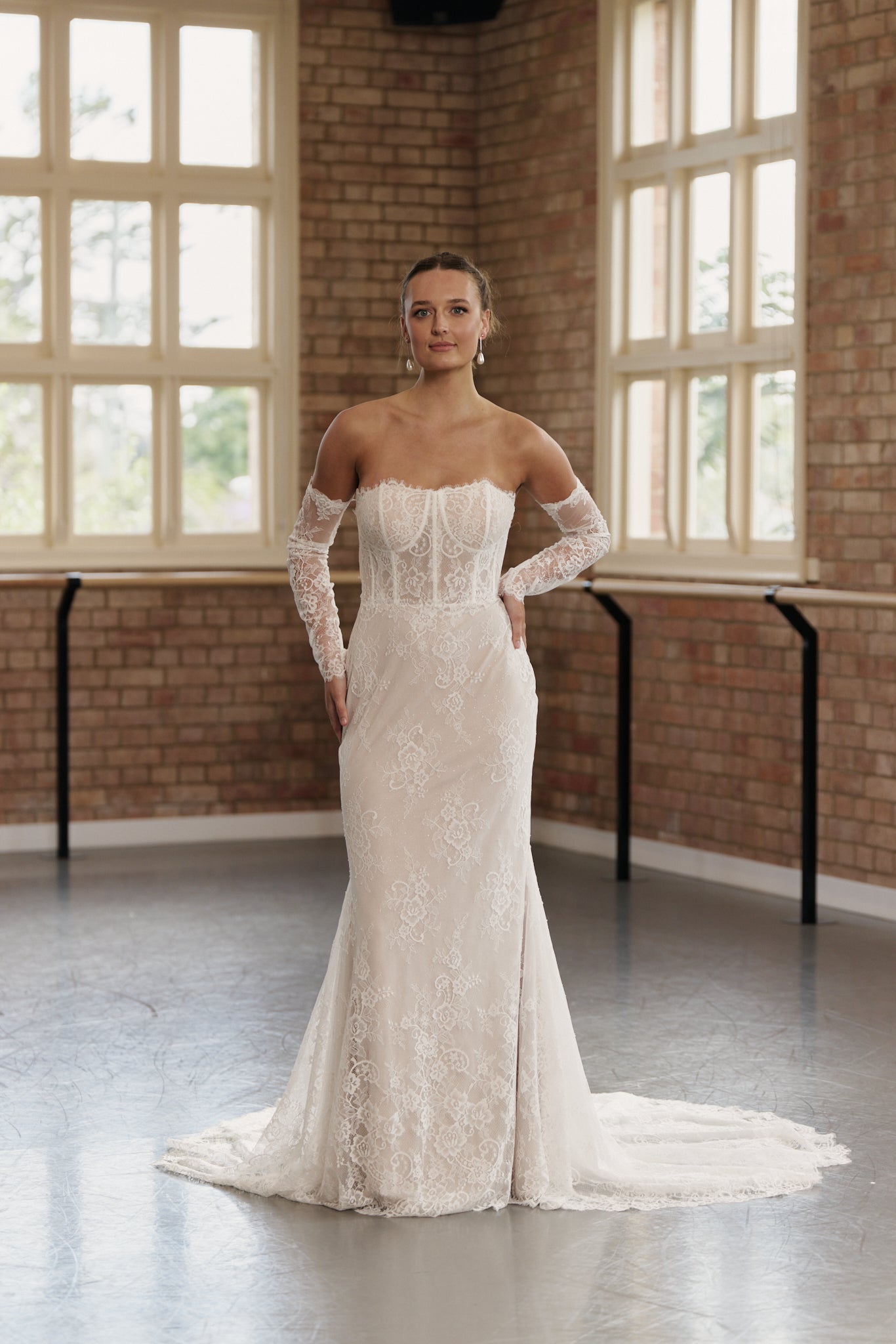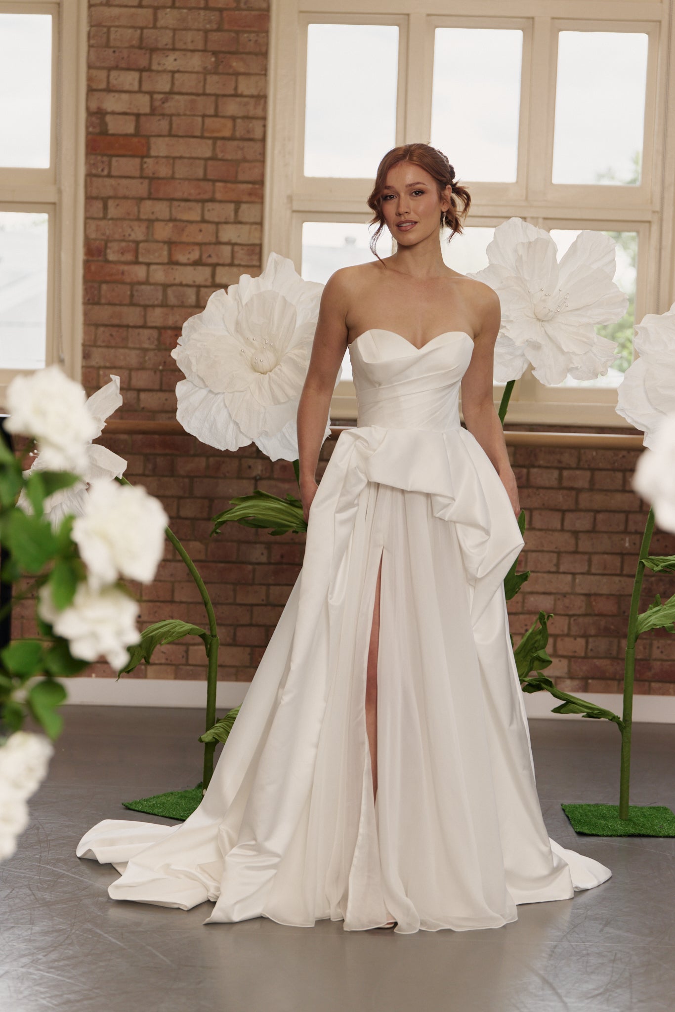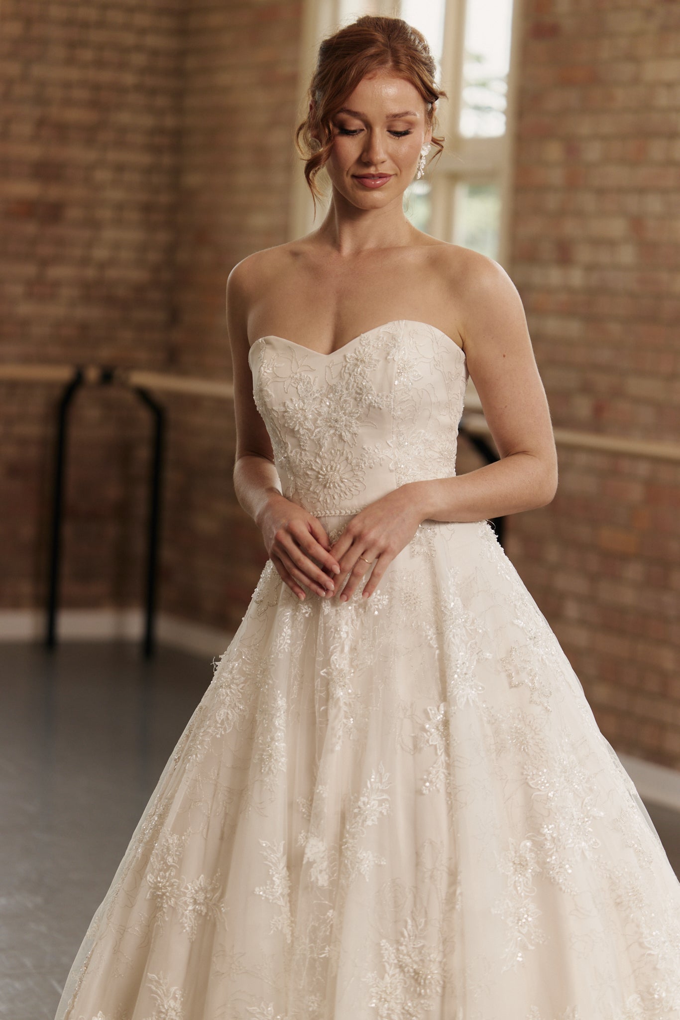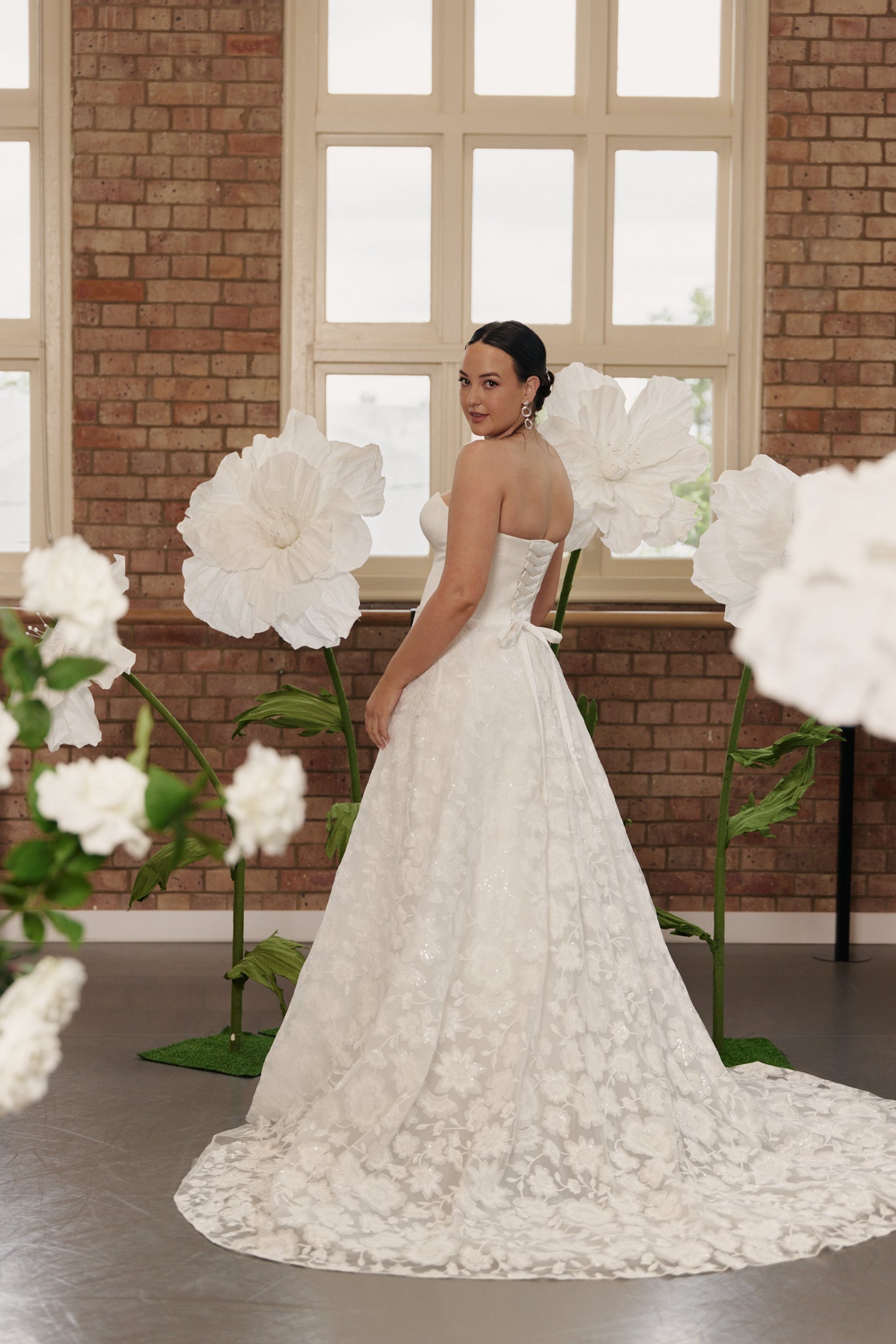 Flattering, supportive, and surprisingly comfortable, our corset wedding dresses are designed to shape beautifully while feeling secure all day long. Discover structured bodices with lace-up or hidden closures that combine timeless elegance with all-day wearability.