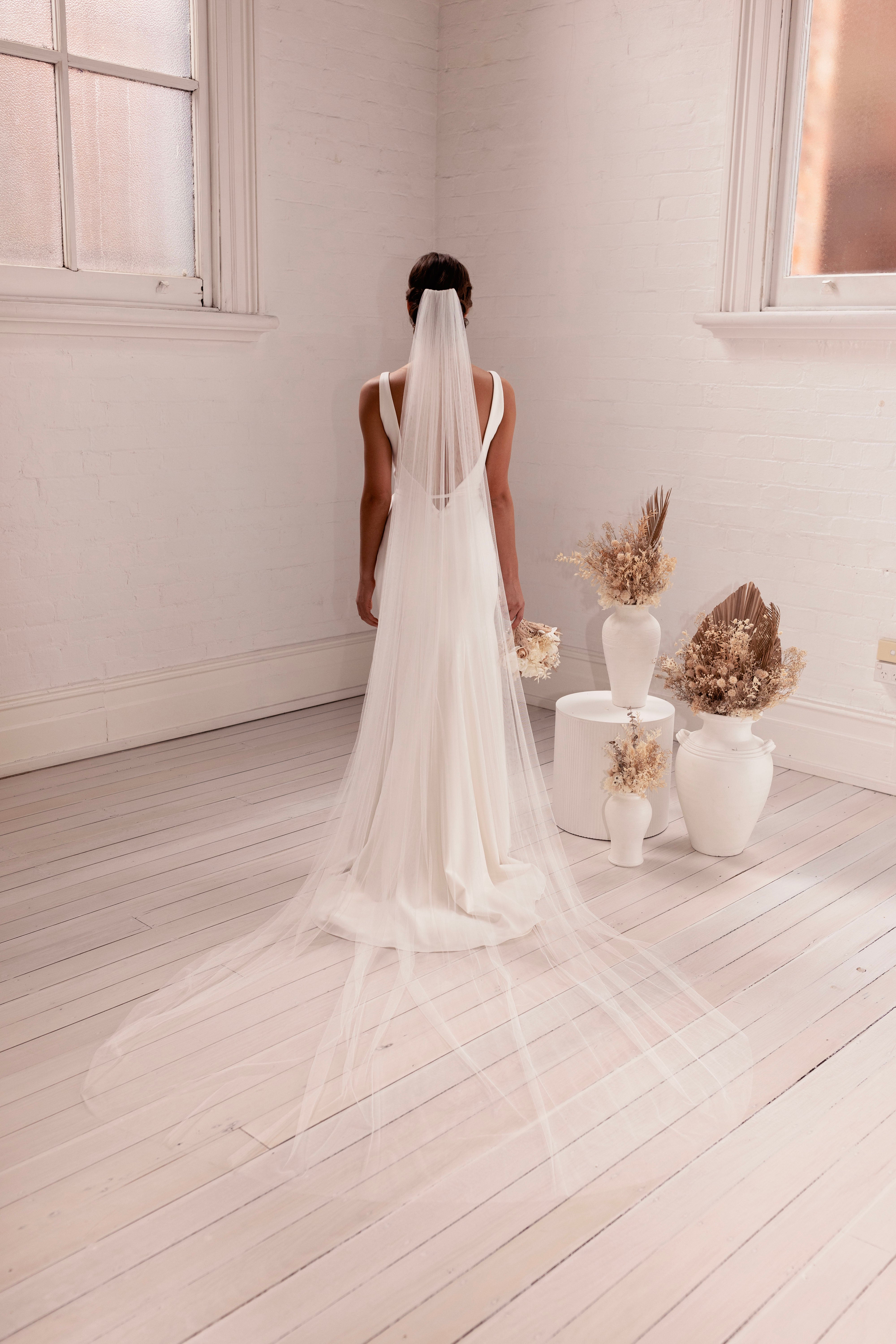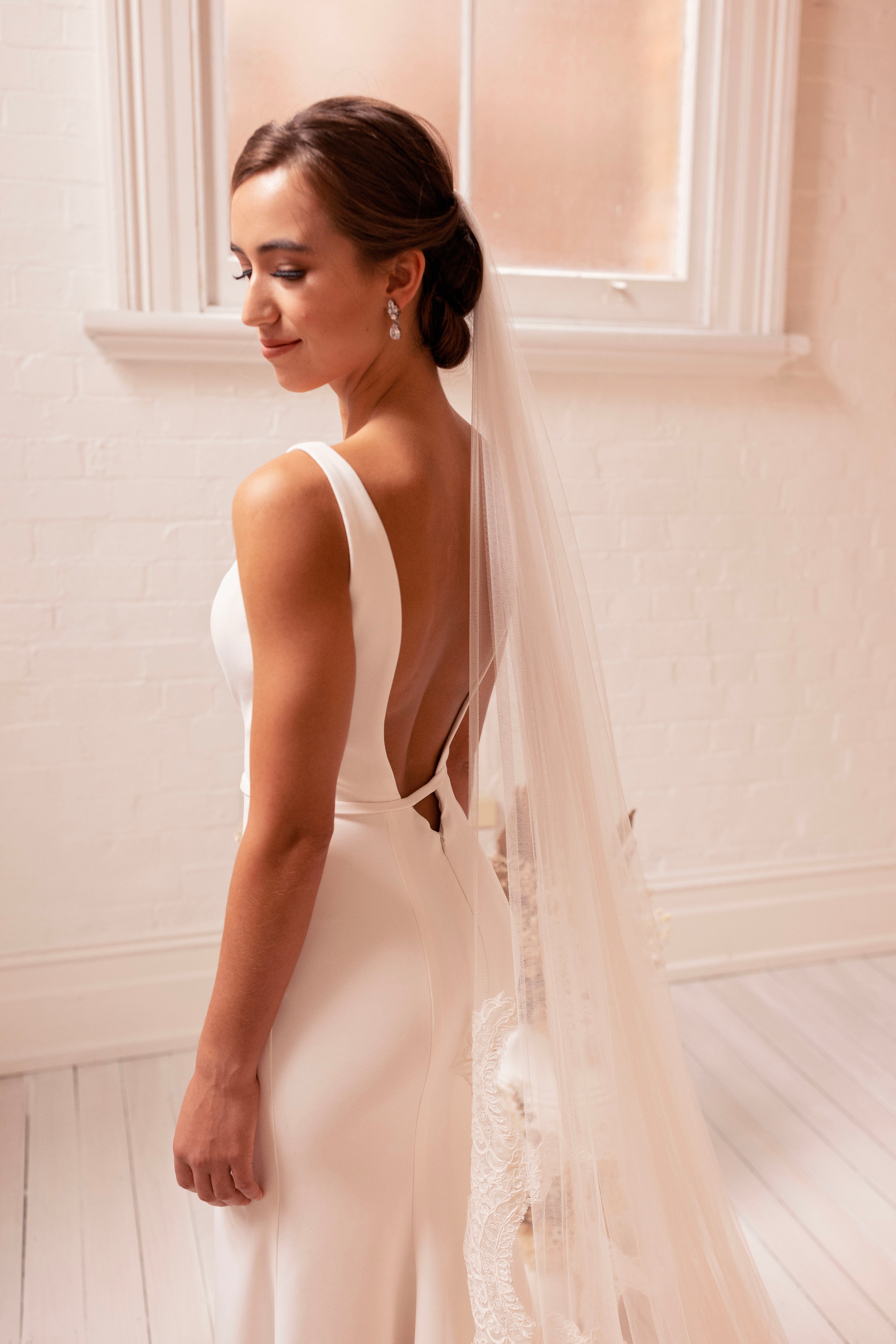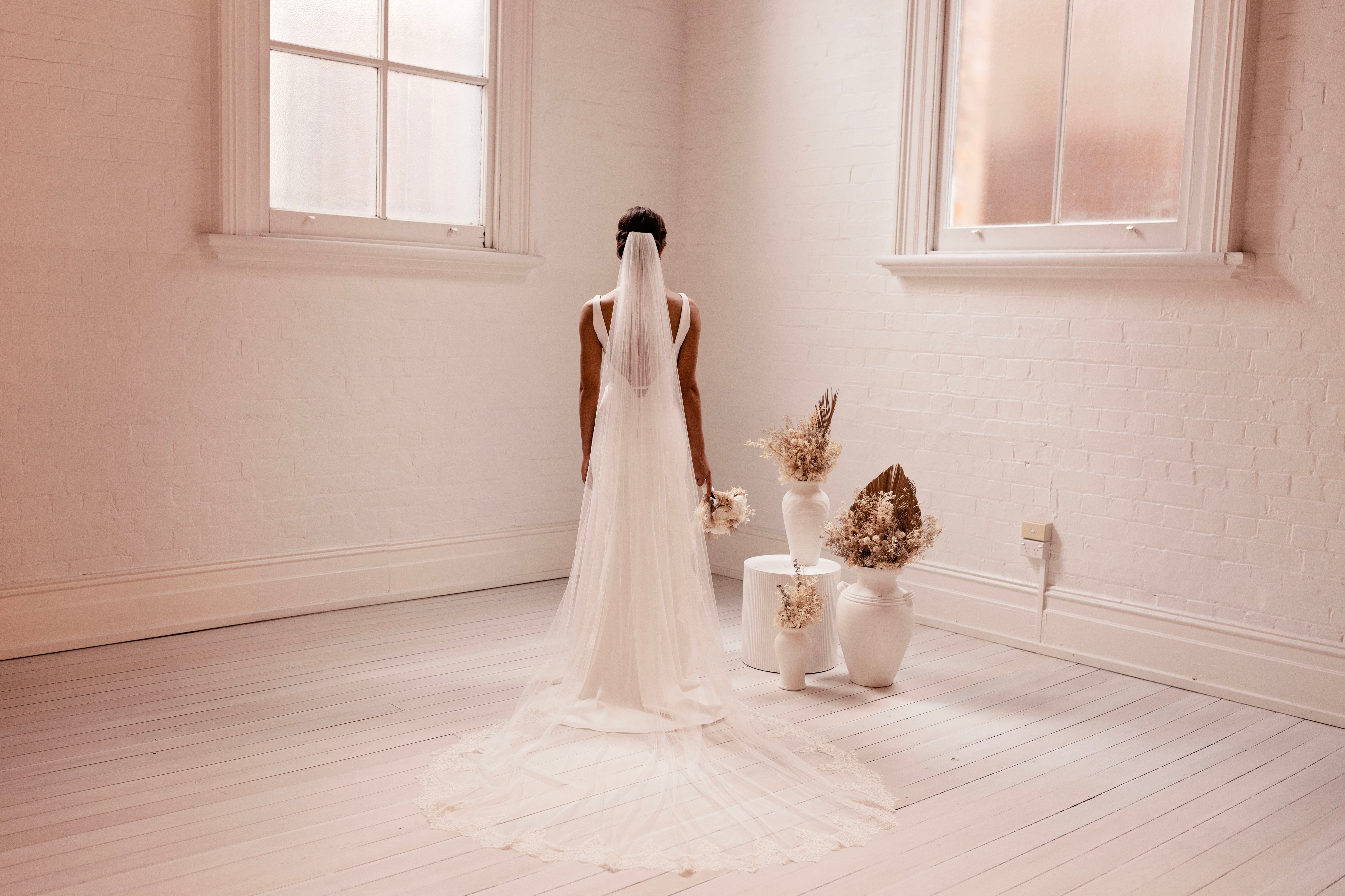 Timeless and romantic, our collection of bridal veils at Bridehouse Bulimba offers the perfect finishing touch. From sheer and simple to detailed and dramatic, find a veil to complement your dream gown.